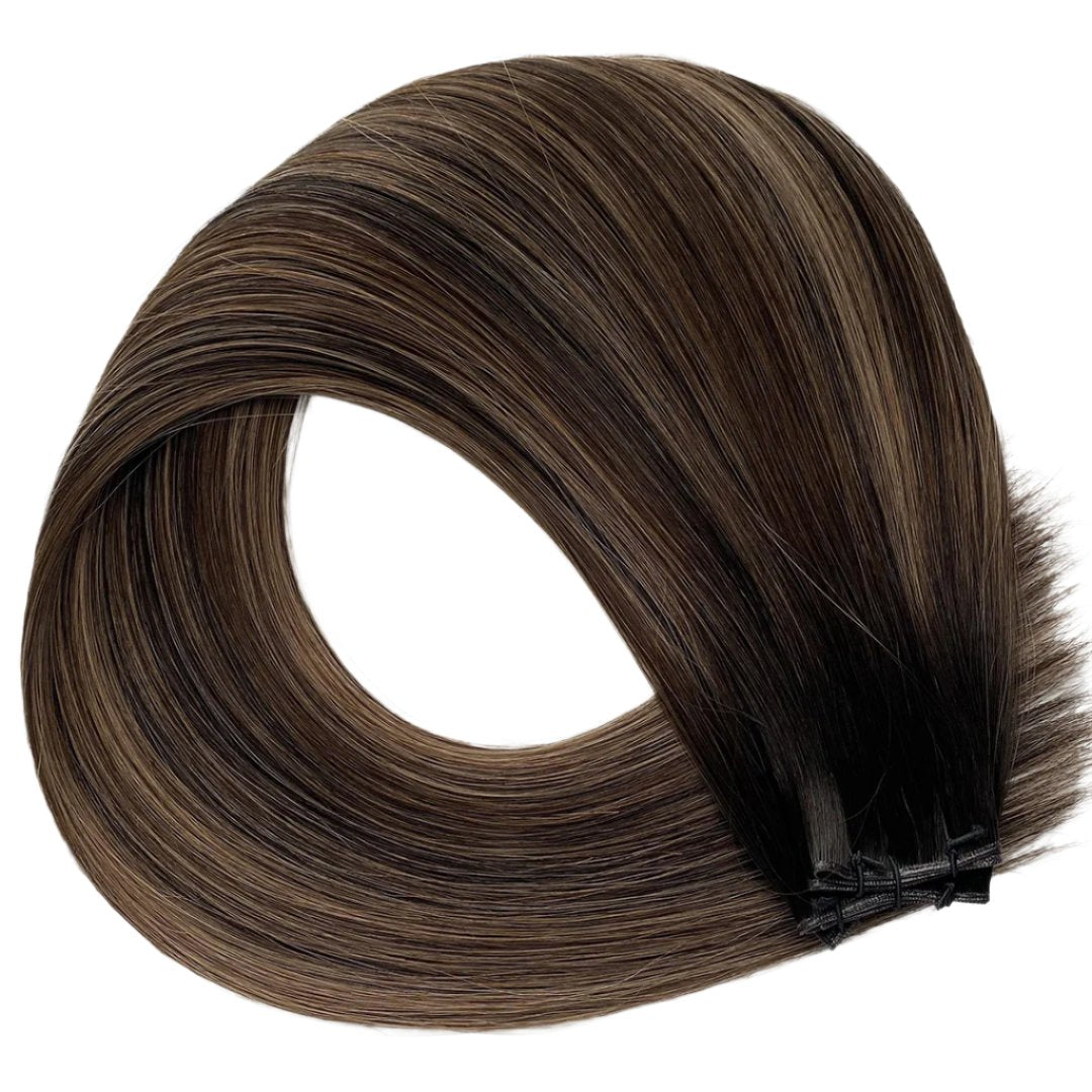 - Level 2 Brown with a warm level 4 blended through the end with a smudge root